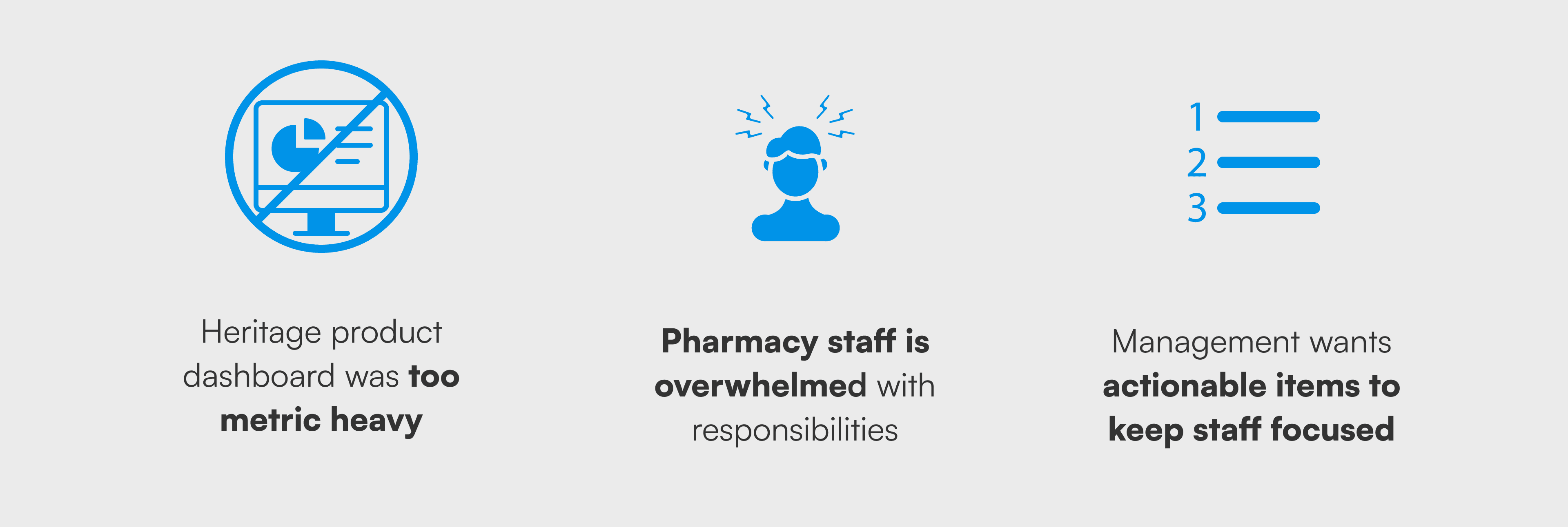 After multiple 1x1 sessions with each in-house pharmacist and a deep-dive with the Customer Advisory Board, I learned the follow: