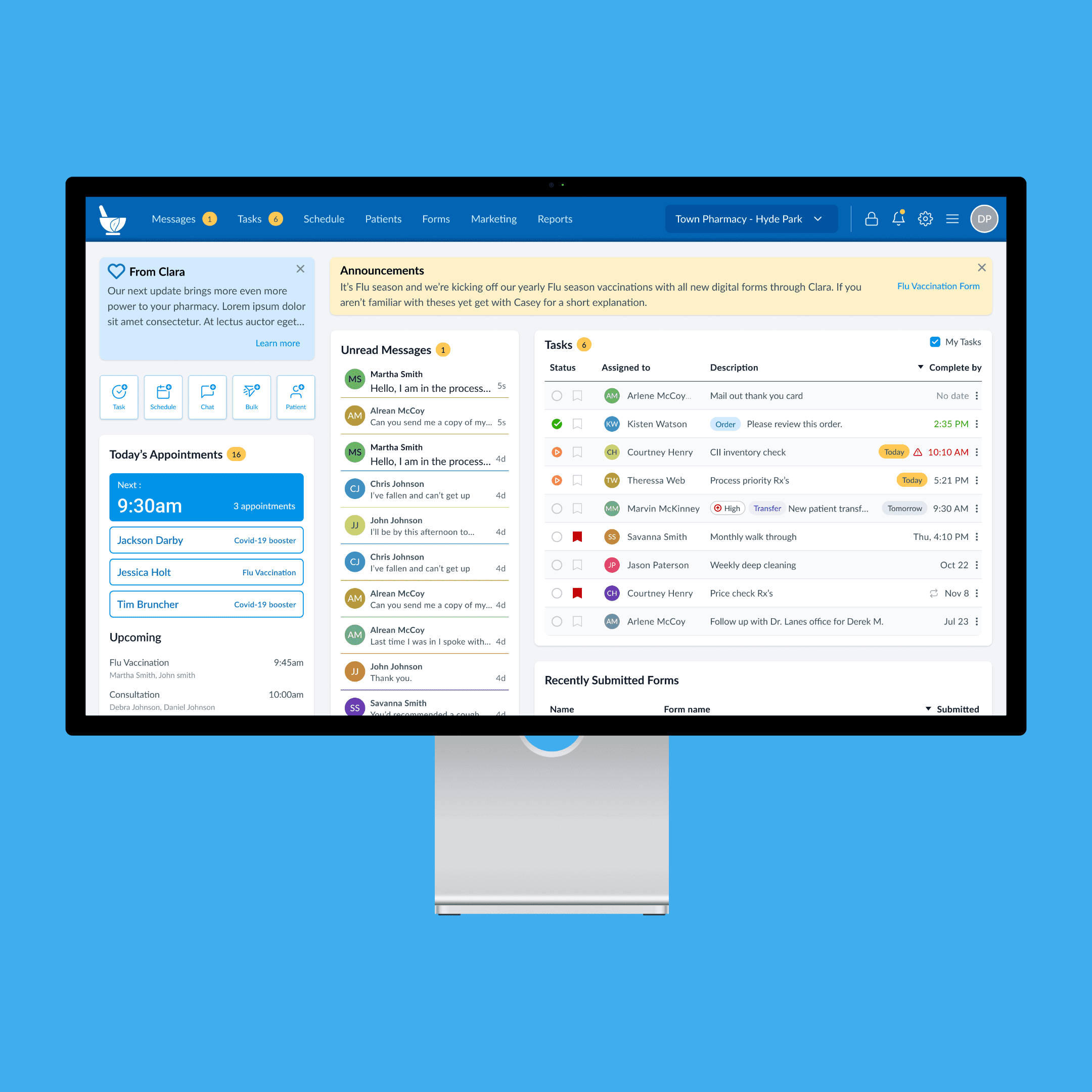 Design a central screen where pharmacy employees can