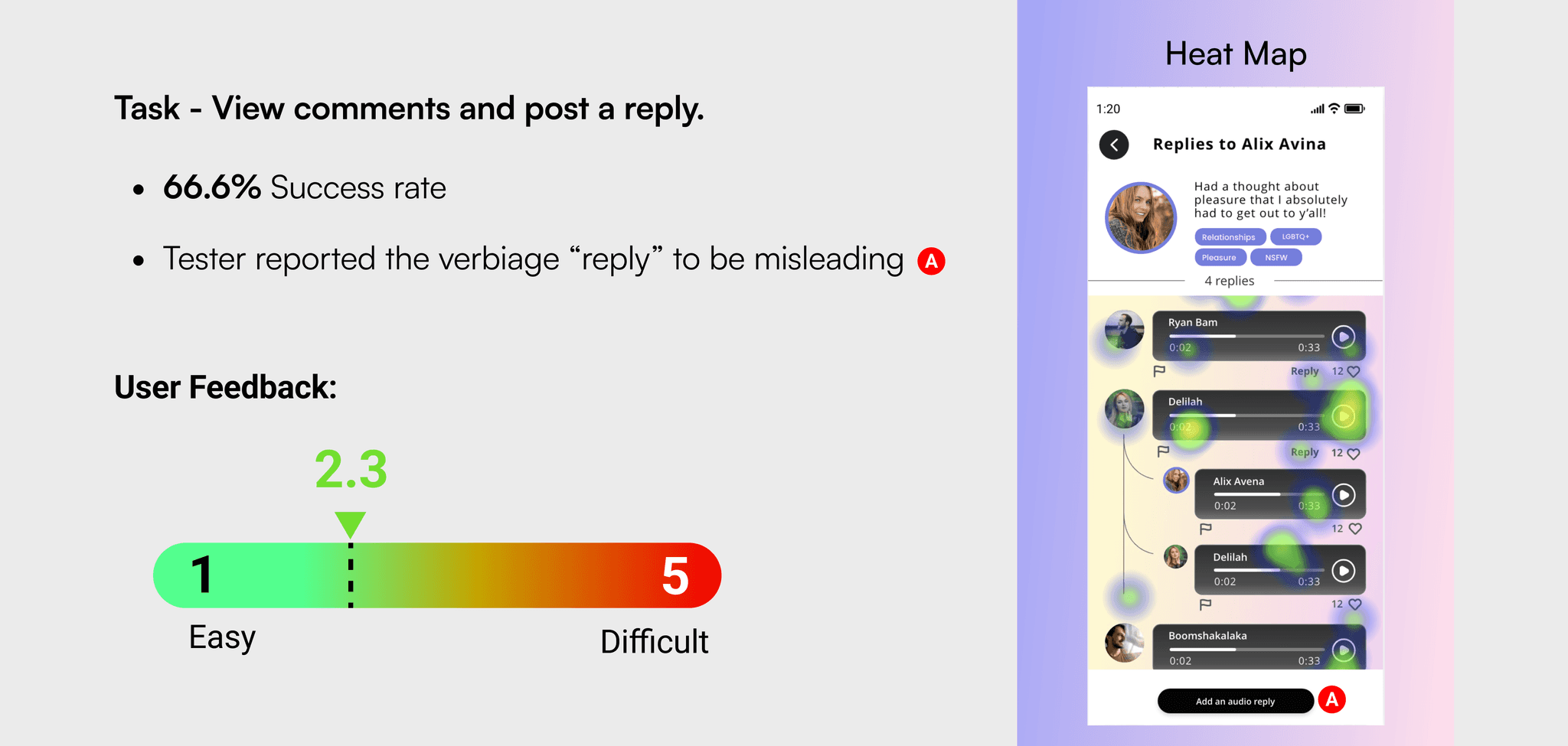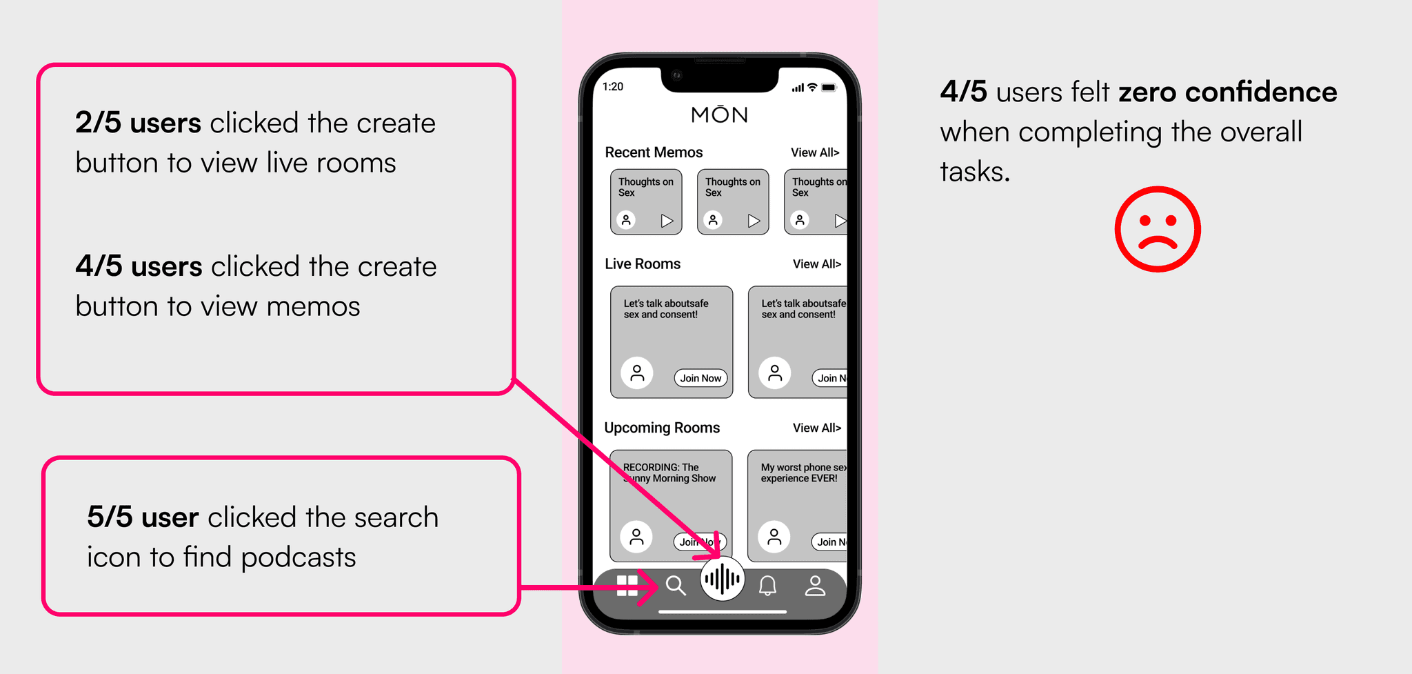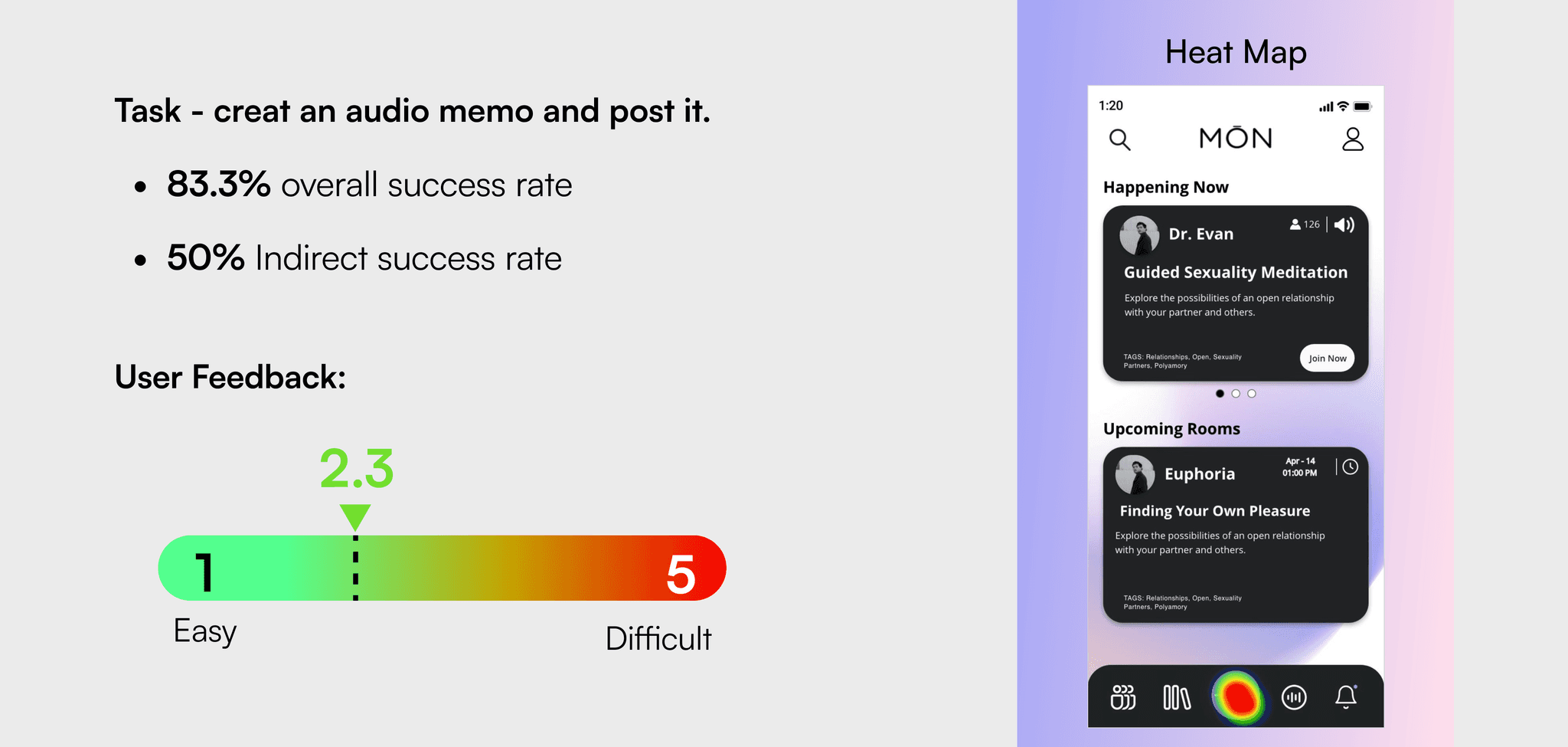 The team gained limited access to the MŌN’s user base due to the nature of this app. Despite being very public with their sex lives, users are understandably shy and concerned about privacy. To help us work around this, MŌN’s CEO offered us a solution that capitalized on his established report with the community.