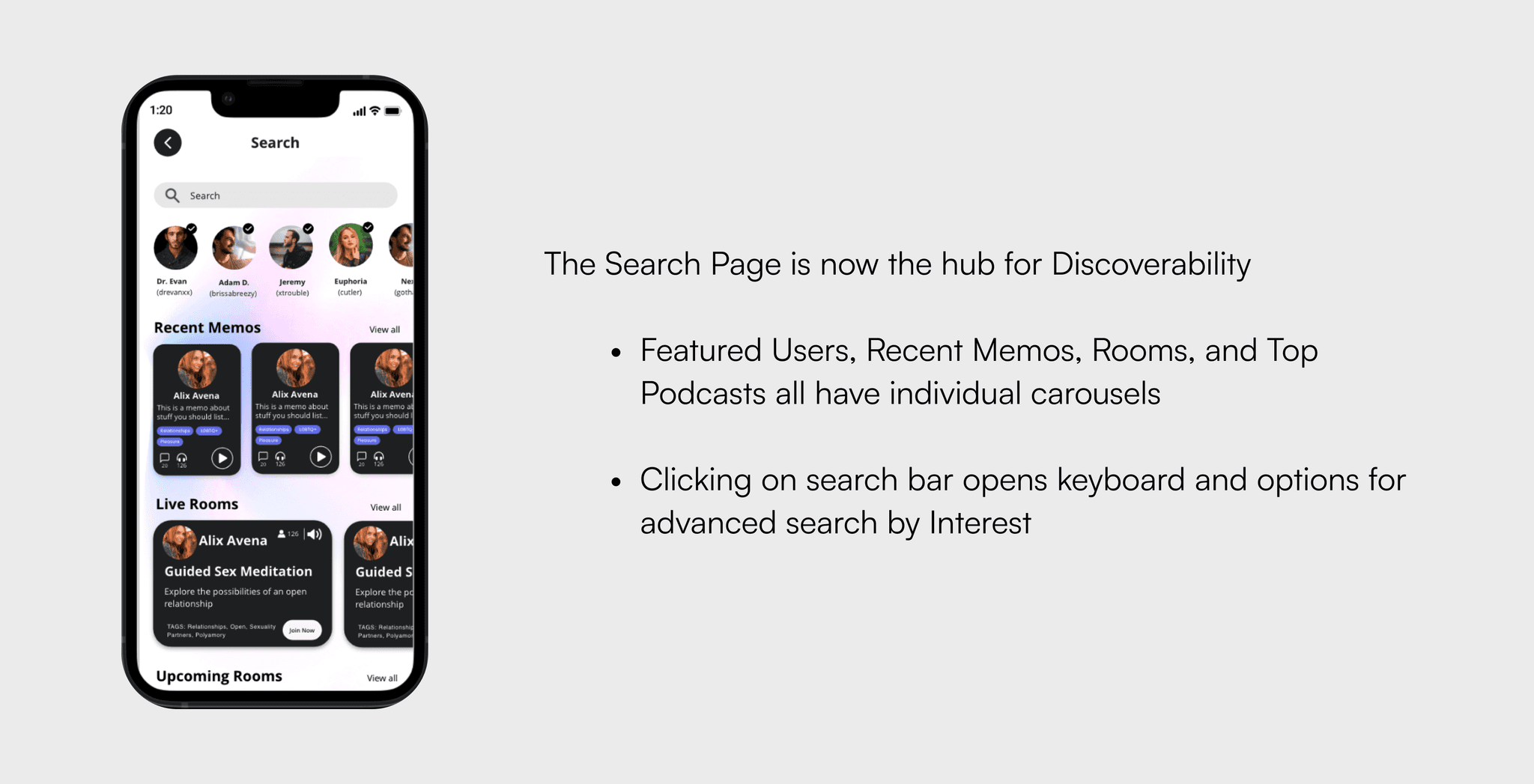I was really excited to work on this project for numerous reason. Social audio apps like Clubhouse and Beams are growing in popularity right now. I personally find them interesting because theres opportunity explore cultural impact and influence in this new area of social media and theres opportunity for users to be creative in new ways with the limitations of audio only content. Additionally, I was more than thrilled to work with a company that pushing the limits of social constructs in numerous areas including freedom of speech on the internet, internet sex work, and most of all society’s general comfort level around discussing sex in positive and healthy ways. There were lots of opportunities to consider things like “what does consent look like in this situation,” “how can we keep or users safe,” and “how can we give users the tools they need to express themselves.” This was more than your run-of-the-mill bootcamp project, no disrespect to anyone.